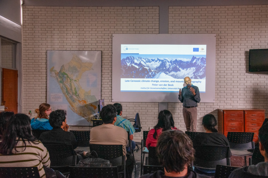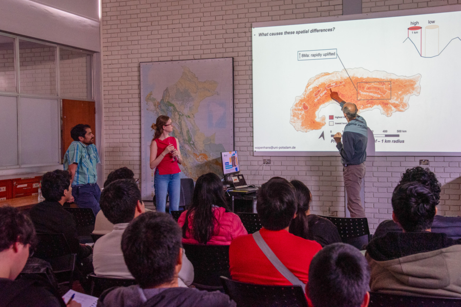 En el evento participaron 2 ponentes de la Universidad de Potsdam: Dr. Peter Van Der Beek y la MSc. Isabel Wapenhanks, junto a nuestro docente Tenure Track, Victor Hugo Garcia, de la Sección Ingeniería de Minas.