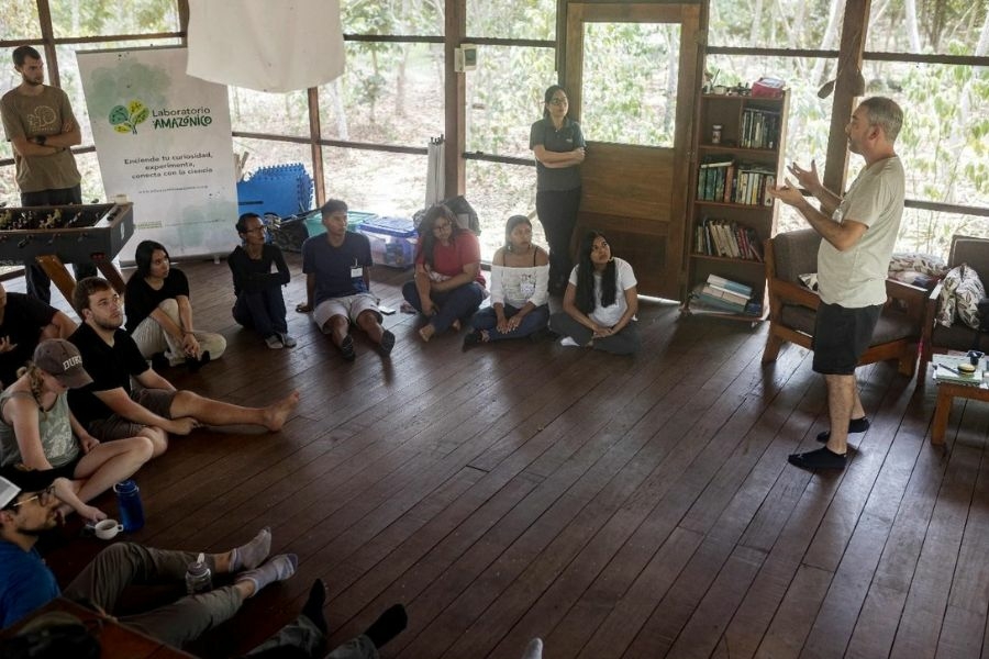 El profesor Ian Vázquez Rowe, director de PELCAN, participó como colaborador en los talleres que se impartieron a jóvenes estudiantes del COAR de Puerto Maldonado, así como estudiantes de pregrado de la Universidad Nacional Amazónica de Madre de Dios (UNAMAD), en los que se presentaron diferentes ideas para que los estudiantes desarrollen sus proyectos de investigación. Asimismo, Carolina Paucarhuanca y Loribeth Bolo, estudiantes de la carrera de Ingeniería Ambiental y Sostenible (IAS) de la PUCP, participaron apoyando a los investigadores de Bhamla Lab en las actividades de investigación durante toda la semana de actividades.